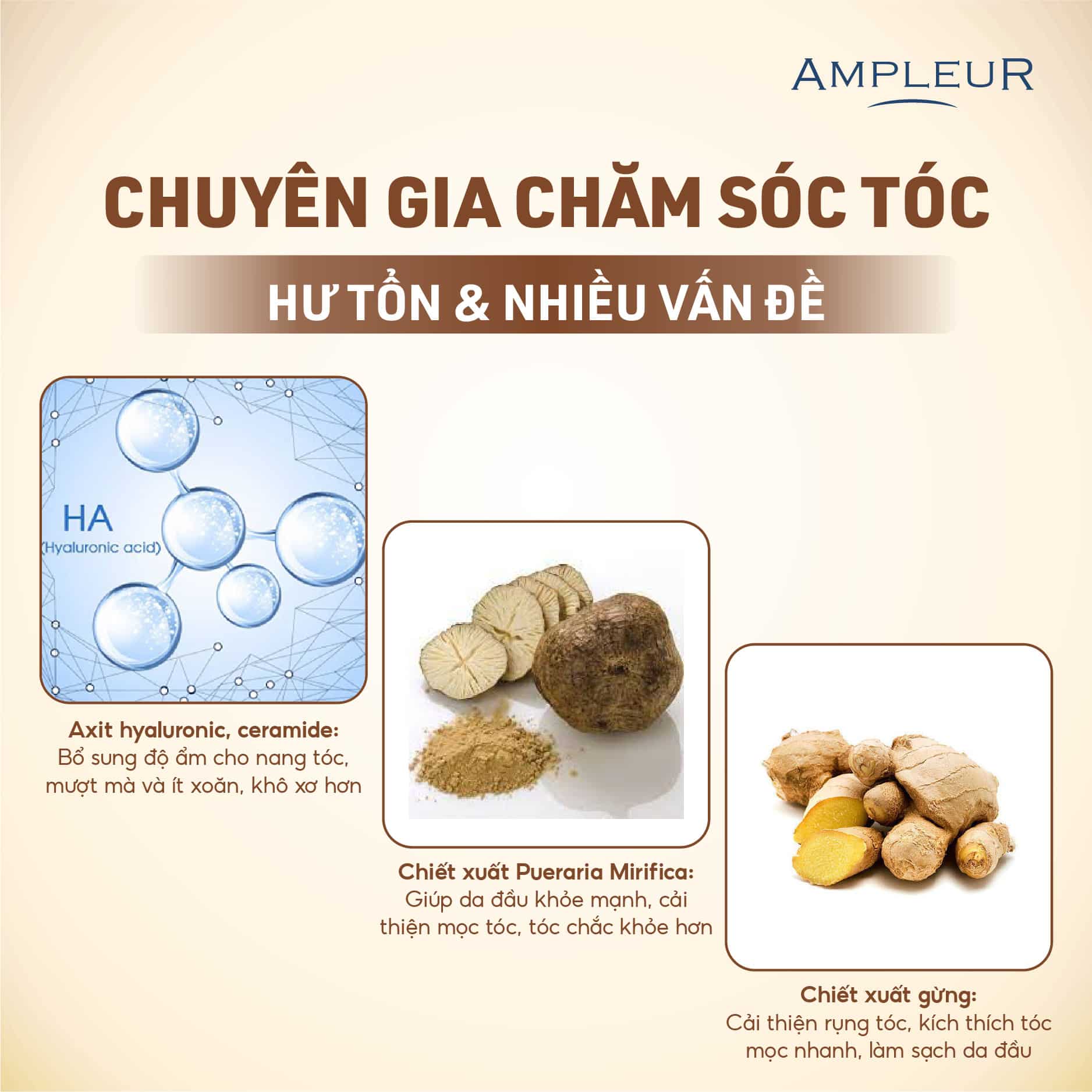 - Axit hyaluronic, ceramide: Bổ sung độ ẩm cho nang tóc, mượt mà và ít xoăn, khô xơ hơn