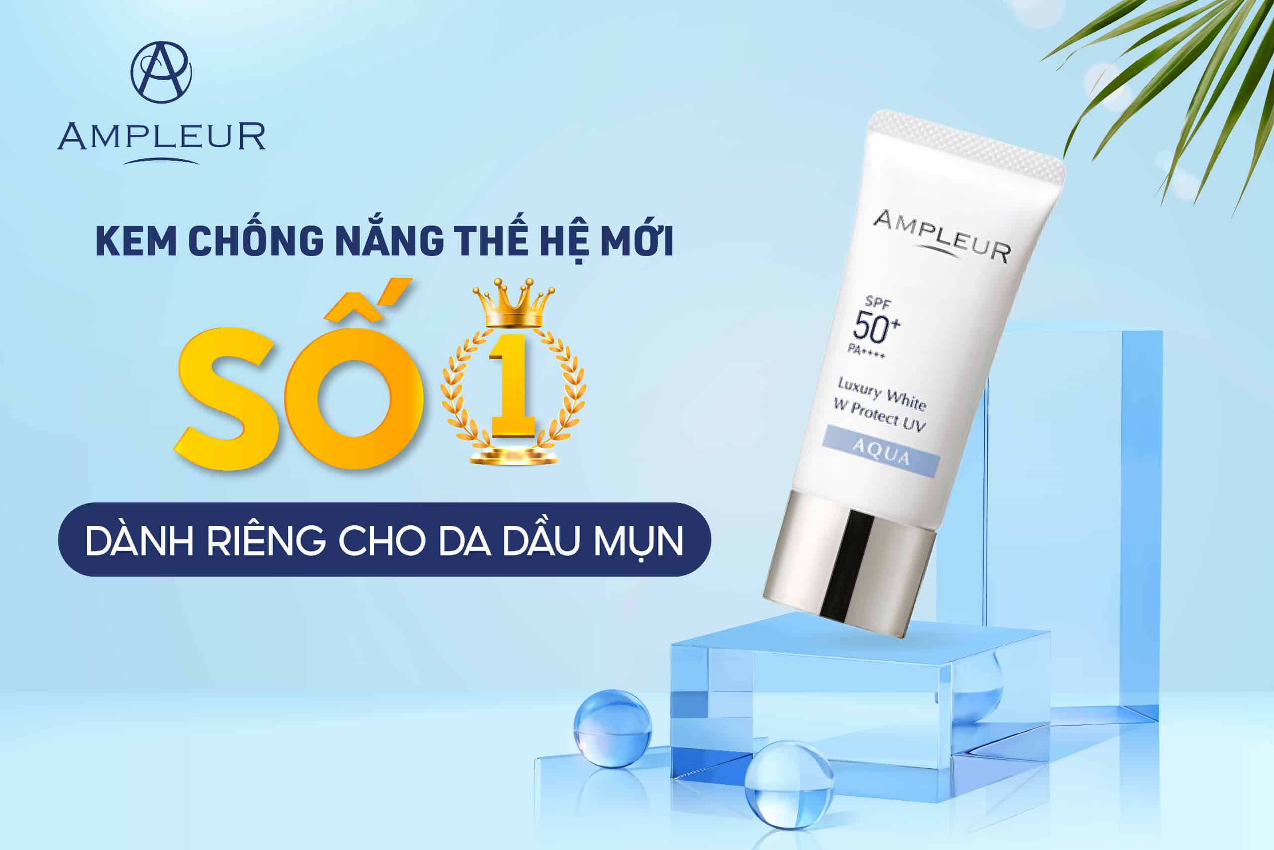 Kem chống nắng Luxury White Aqua SPF50+/PA++++ thích hợp cho da dầu, da hỗn hợp thiên dầu, da dầu mụn: