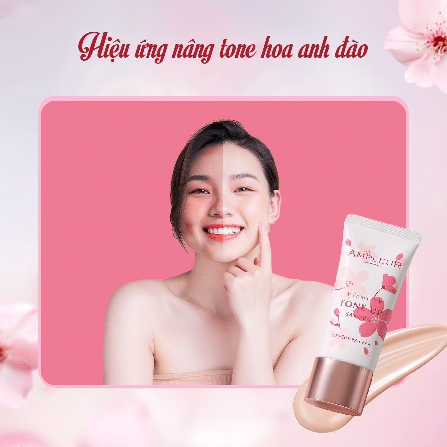 Huyết thanh làm đẹp chống tia UV tối ưu của AMPLEUR, Kem chống nắng W Protect UV ToneUp Sakura, đã được đổi mới với các thành phần tăng cường hàng rào bảo vệ da, mang lại lợi ích chăm sóc da tuyệt vời hơn nữa, đơn giản hóa quy trình trang điểm của bạn chỉ trong một bước
