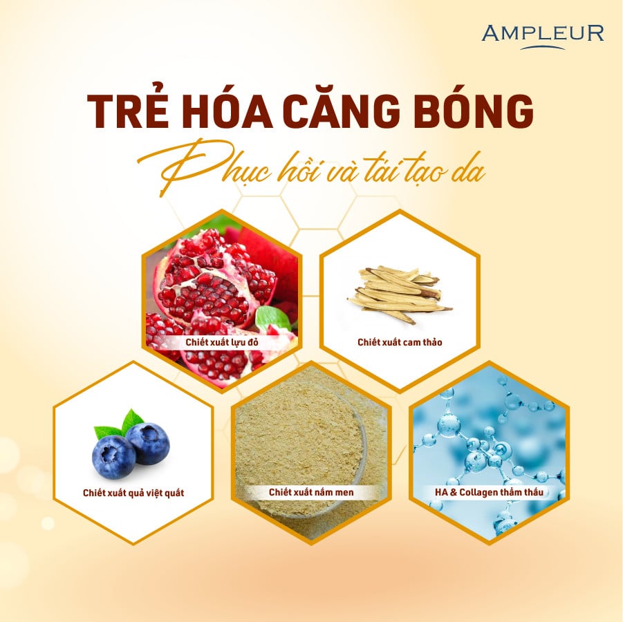 - Chiết xuất lựu đỏ: Nuôi dưỡng làn da khỏe đẹp từ sâu bên trong, giúp chống lão hóa da hiệu quả, sản sinh collagen và protein, duy trì kết cấu ổn định cho làn da