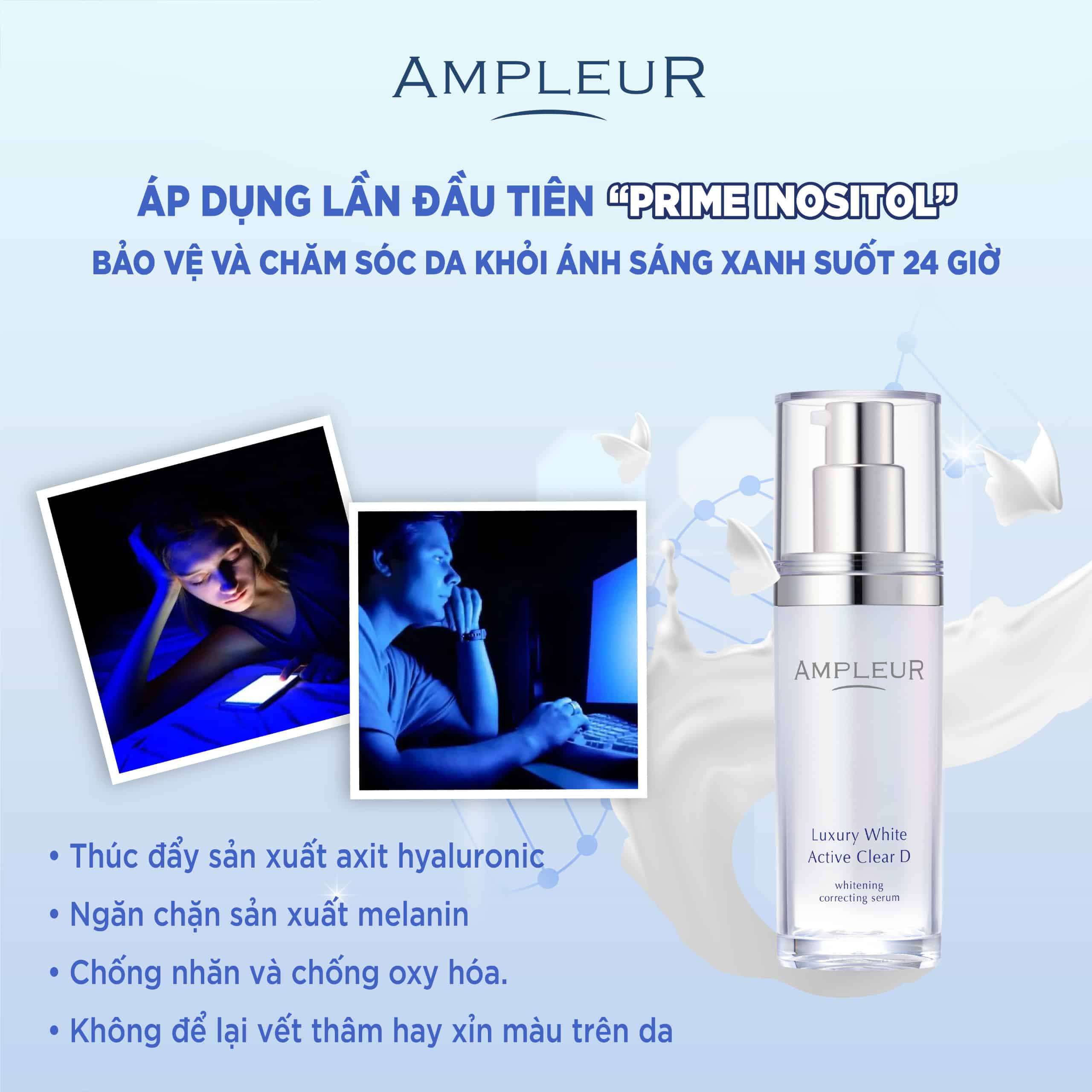 - Tổng hợp các yếu tố cấp ẩm giữ ẩm cho da, chất chống oxy hoá giúp hạn chế tác hại của ánh sáng xanh => ngăn ngừa lão hoá sớm