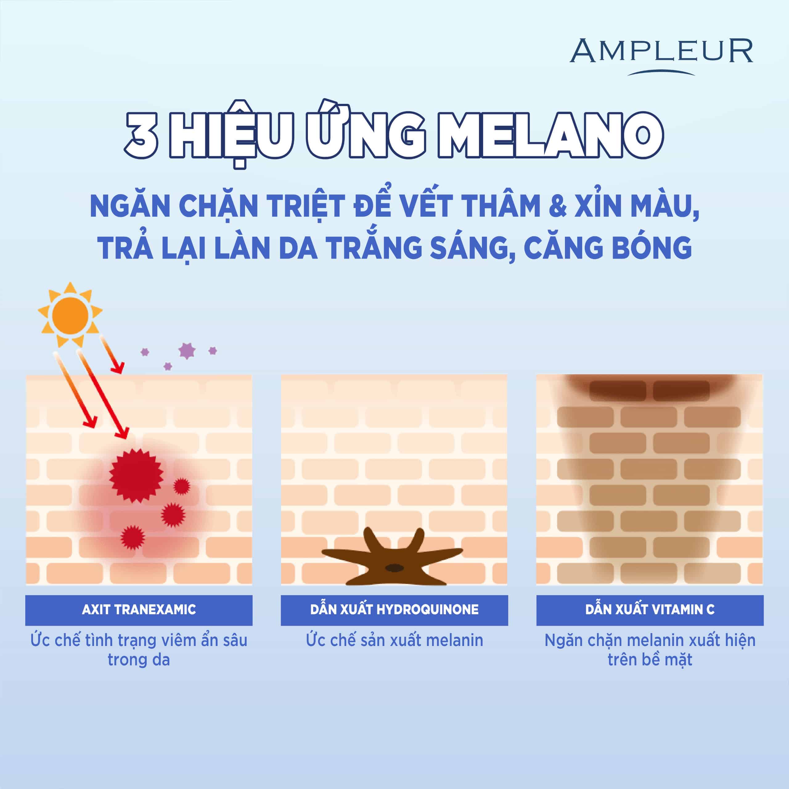 - Chứa axit tranexamic, vitamin C và hydroquinone mờ thâm, giảm nám, trắng sáng đều màu